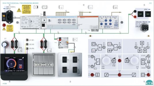 El sistema de formación para KNX es adecuado para la enseñanza de habilidades básicas, así como para las habilidades de puesta en marcha de situaciones de sistema más complejas. Solo se utilizan componentes industriales con la última tecnología. Las situaciones de aprendizaje se documentan mediante ejemplos de planificación de proyectos. Los documentos didácticos adjuntos también están adaptados al estándar de software actual. Los ejemplos de proyectos disponibles se comentan en detalle y completan el concepto de formación que consta de hardware, software y material didáctico. La tecnología de construcción inteligente o "Smart Building Technologies", es decir, la comodidad en el entorno de la vida diaria, son las palabras de moda actuales en la automatización de edificios. El crecimiento conjunto de diferentes oficios y su comunicación entre sí hacen que nuestras condiciones de vida sean más agradables y cómodas. La formación para convertirse en técnico en electrónica para energía y tecnología de la construcción o en técnico en electrónica para edificios y sistemas de infraestructura, por supuesto, cambia algunos requisitos. Los nuevos retos y el conocimiento de las nuevas tecnologías forman parte del entrenamiento diario. ETS DIDACTIC apoya la formación en las áreas mencionadas con sistemas de formación y escenarios de aprendizaje adecuadamente modulares