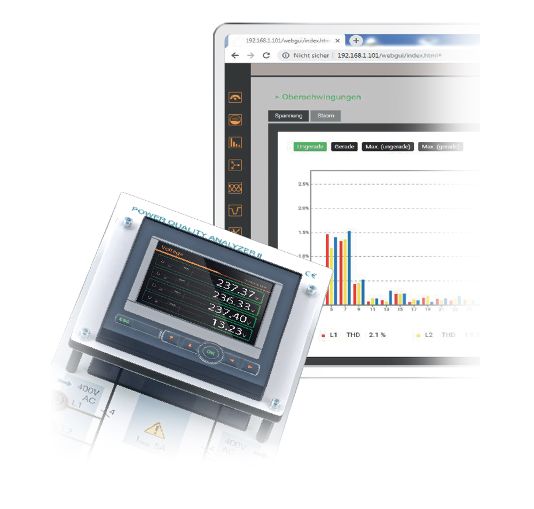 Con el servidor web, los parámetros relevantes del analizador de red trifásico pueden ser: