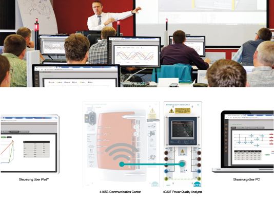 Las difíciles relaciones entre corrientes, tensiones, potencias (aparente, activa, reactiva), cos y armónicos también se explican gráficamente utilizando consumidores conocidos.